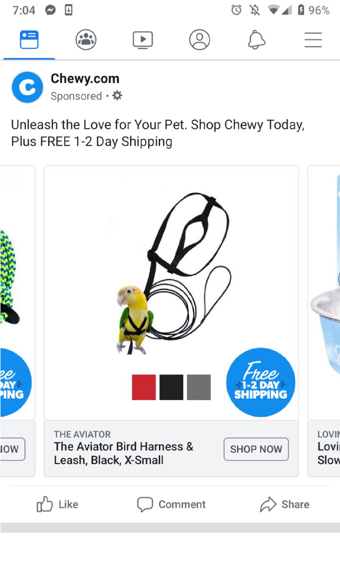 Before you ask—no one in our office has pet birds. But someone did receive this very specific ad for a bird harness.